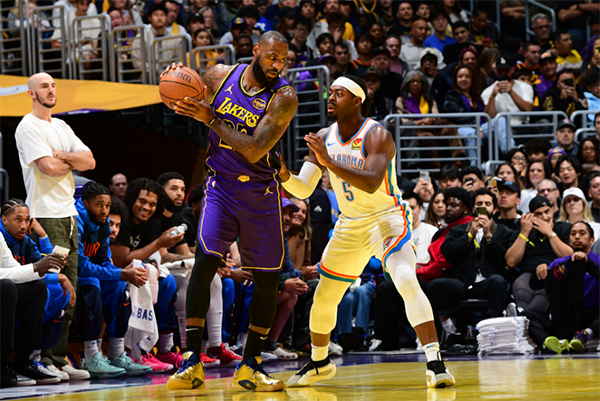 24直播网讯北京时间11月30日,NBA杯小组赛湖人主场93-101不敌雷霆,詹姆斯全场13投5中、三分4中0拿到12分8篮板6助攻5失误,三次运球走步违例,末节关键时刻踩线失误后怒砸篮球泄愤;湖人输球后小组赛战绩2胜2负,无缘小组第一,无缘小组第一,确定出局无缘晋级八强,无缘卫冕杯赛冠军。