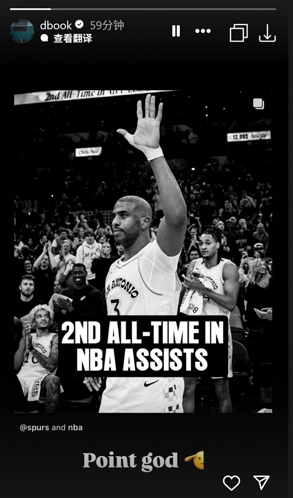 24直播网讯北京时间12月10日/讯在此前马刺和鹈鹕的比赛中,保罗迎来生涯伟大里程碑,生涯助攻总数达到12099次,正式超越贾森-基德升到NBA历史助攻榜第二位;保罗哽咽回应达成新成就,NBA众星发声祝贺,库里布克坦言:控卫之神。