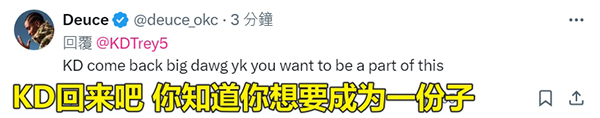 杜兰特发推盛赞卡鲁索,这并没有什么值得争议的事情,可随后杜兰特秒删推文,如此举动引热议,有球迷表示:你不许看雷霆比赛,把电视给我关上;还有球迷表示:KD回来吧,你知道你想要成为(雷霆队)的一份子。