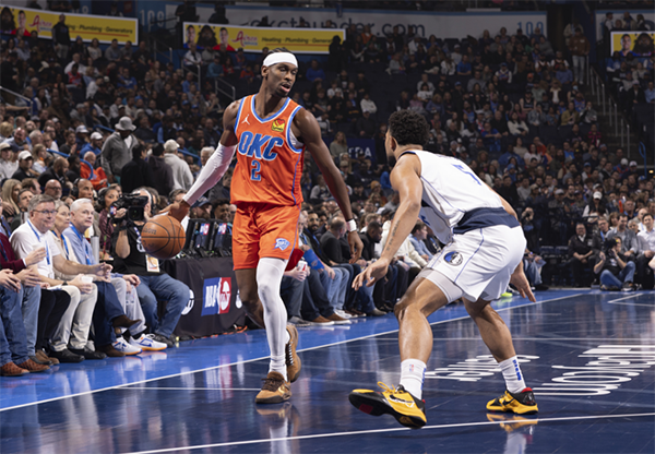 NBA杯1/4决赛,雷霆2-9开场落后,见状亚历山大火力全开,连得7分吹响反击号角,多尔特连中两记三分,雷霆一波13-0反超比分;面对独行侠的攻势,亚历山大撞开欧文撤步中投命中,更是轰进不讲理撤步三分,SGA首节9中5独砍16分3篮板,东契奇5中1仅2分3篮板3助攻。