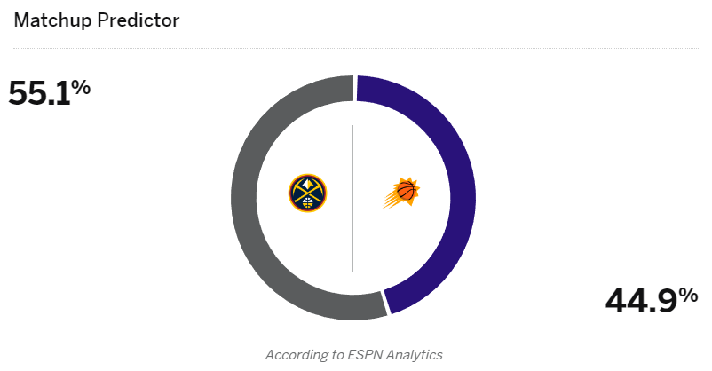 此前太阳客场27分惨败掘金,根据赛场,太阳将在年终大战再次对阵掘金,NBA官方晒杜兰特和约基奇对阵海报,为本场大战进行预热;ESPN预测太阳赢球概率为44.9%,掘金赢球概率为55.1%。