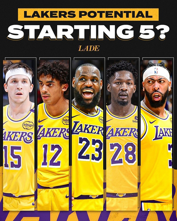 美媒预测湖人新首发——詹姆斯、浓眉、里夫斯、克里斯蒂和芬尼-史密斯,目前湖人18胜13负排在西部第五,究竟佩总能否为球队引援一名替补中锋?拭目以待吧。