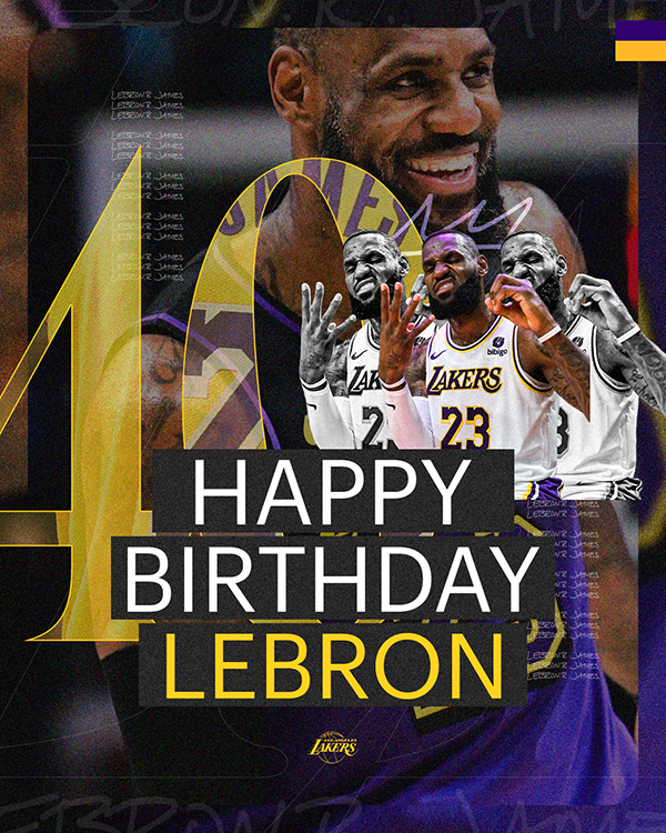 湖人官方晒海报为詹姆斯庆生,还晒出詹姆斯湖人生涯40大扣篮集锦;美国男篮官方:祝贺三届奥运金牌得主勒布朗-詹姆斯40岁生日快乐。
