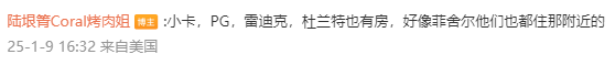 据小卡的中方经纪人烤肉姐透露,小卡、乔治、雷迪克、杜兰特以及费舍尔等NBA球员都住在这片豪宅区;据悉,小卡于2021年买下该处房产,豪宅价值超过1700万美元。