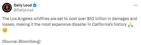 受到强劲干燥风暴“圣安娜风”的影响,洛杉矶山火烧了一天一夜仍在蔓延,据悉,这次火灾主要两个地方被烧得严重,pacific palisades (洛杉矶西北部的富人区,不少NBA球星都住在这儿)和Pasadena (洛杉矶东北部)带来的直接经济损失很大,因为富人房子都比较贵,而且附近还有成套设施,商业区、高档餐厅、历史建筑、好的学校校区等。