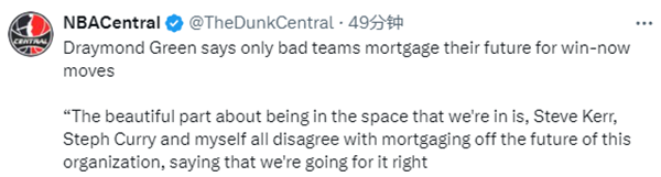 追梦公开称糟糕的球队才会为了赢在现在去抵押未来,很明显追梦这样的言论会得罪很多球队。