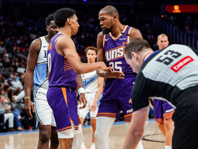 24直播网讯 北京时间1月15日,NBA常规赛太阳客场117-122惜败老鹰,杜兰特和布克合砍66分仍输球,KD沮丧提前离场,太阳客场老鹰已经遭遇11连败,战绩又掉到西部第11位。