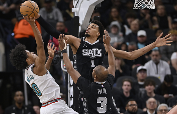 下半场,马刺被灰熊一波12-2追回10分,随后马刺得分止血,无奈灰熊外线突然下起三分雨,肯纳德和胡夫接连为灰熊命中5记三分,灰熊一波攻势反超比分,三节打完马刺88-94落后6分,马刺单节25-43狂输18分,这一节文班5投1中只拿到2分,没有盖帽进账。
