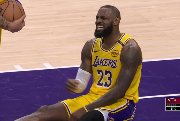 湖人第三节29-19单节净胜10分,这一节老詹3中2拿到6分还送出3次助攻,期间40岁的詹姆斯堵抢眼造阿德巴约进攻犯规,被膝盖顶到手臂十分痛苦,不得不说,老詹真的拼了。