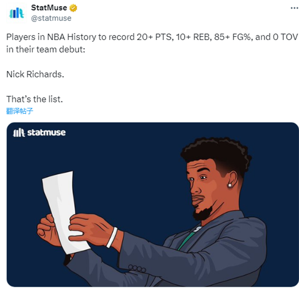 理查兹也成为历史上第一位首秀至少20分10篮板,命中率85%且没有失误的球员。