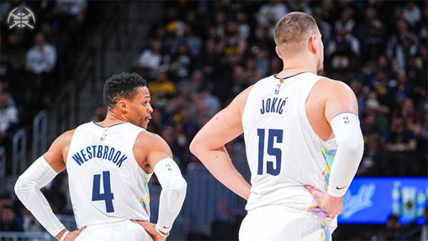 第一节掘金35-27领先8分,约基奇打满首节,多次接威少的传球后在禁区轻松得分,外线三分也早早开张,首节6中4拿到1分4助攻2篮板,威少1投1中拿到5分5篮板4助攻,掘金双MVP之间的配合太默契,约基奇和威少两人单节送出8次助攻。