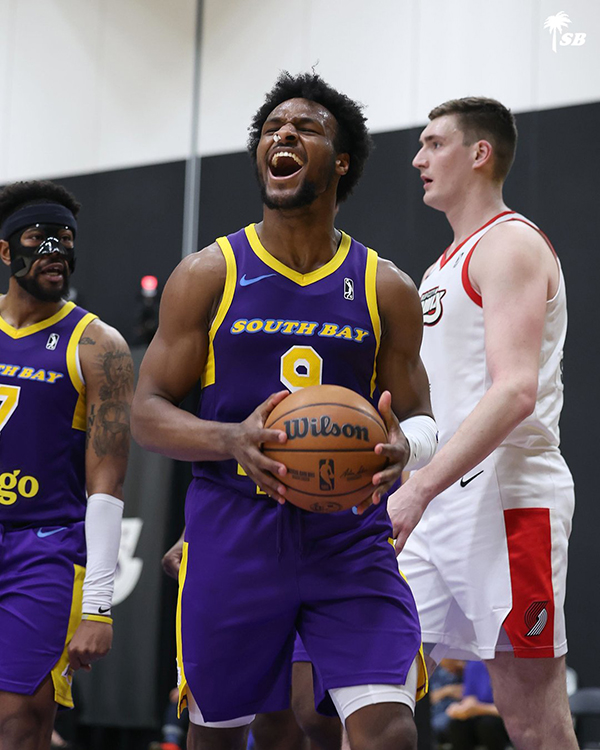 24直播网讯 北京时间1月25日,NBA发展联盟南湾湖人122-110击败撕裂之城混音,布朗尼全场22投10中、三分11中5轰下31分3助攻2抢断2篮板,多次暴扣点燃球馆,隔扣2米14中锋怒吼庆祝,关键时刻连中三分、助攻科洛科以及罚球杀死比赛;布朗尼本场得分创生涯新高,生涯第二次单场得分30+。