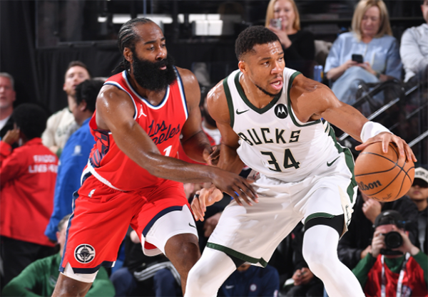 第二节,快船和雄鹿展开持久拉锯战,小卡和鲍威尔等人输送火力,这一节哈登3投0中仅仅靠罚球拿到2分,半场打完快船58-59落后1分。