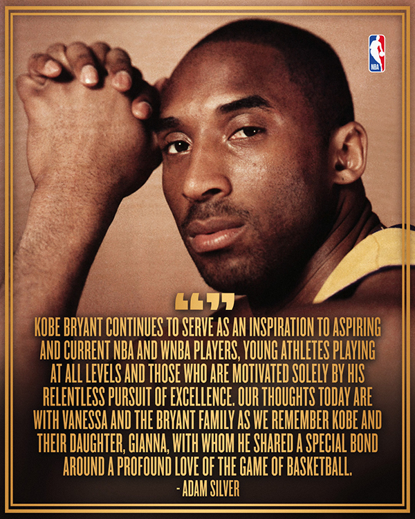NBA总裁萧华缅怀科比,表示:科比-布莱恩特继续激励着有抱负的NBA和WNBA现役球员,各级别的年轻运动员以及那些被他不懈追求卓越所激励的人。今天,我们的心与瓦妮莎和科比的家人同在,因为我们怀念科比和他们的女儿吉安娜,科比和他们对篮球运动有着深厚的热爱,他们之间有着特殊的联系。