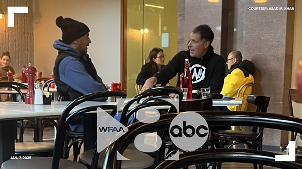 达拉斯当地一位名叫Asad Munir的球迷拍下了哈里森与佩林卡在咖啡馆会面的时刻,这被视为历史性的时刻。