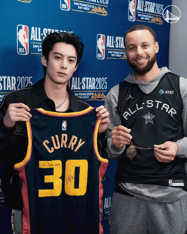 24直播网讯北京时间2月16日,中国艺人王鹤棣又圆梦了,勇士官方晒出王鹤棣与库里合影,王鹤棣获得库里亲签的球衣,并且送给库里一面铜锣。