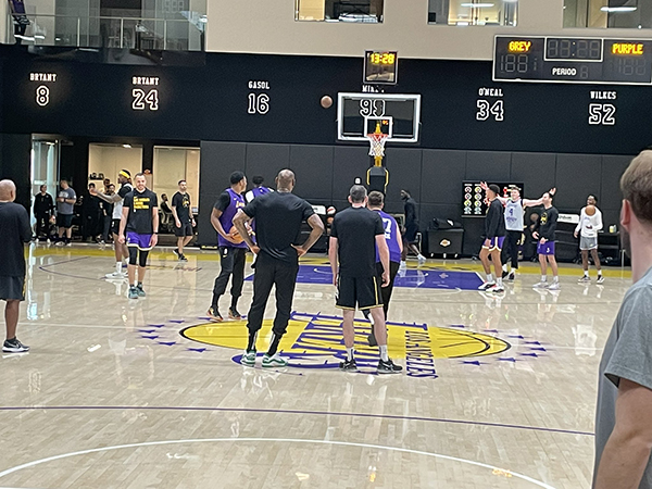 湖人全队迎来全明星赛之后的第一次训练,詹姆斯和东契奇带队训练,湖人队内的训练氛围很好;训练结束后,湖人众将进行了一场超远三分大赛,芬尼-史密斯和詹姆斯都未能投进中场三分,东契奇踩着湖人logo一击即中,湖人训练师也没命中,东契奇又扔进不可思议的高弧度三分。