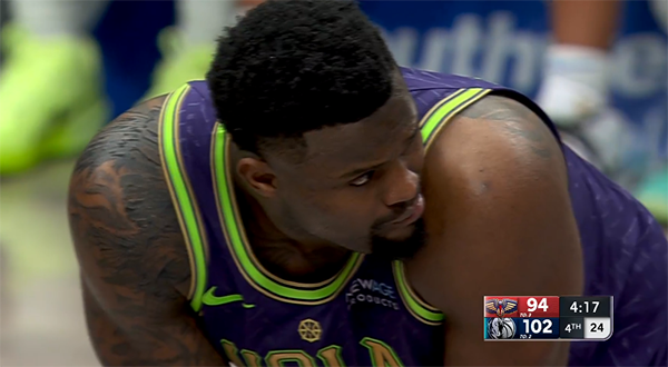 下半场, 第三节锡安继续主动进攻,横冲直撞不可阻挡,要么造犯规,要么撞翻对手把球打进,单节4中3拿到10分3篮板,不过三节打完鹈鹕仍旧落后,处于被动的局面。