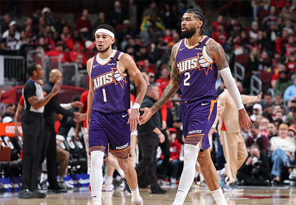 面对东部第10的公牛,太阳主动大变阵,杜兰特、布克、比尔、奥尼尔和理查兹首发出战,比尔顶替琼斯重返首发,这是比尔连续15场替补后首次首发,时隔47天,太阳三巨头终于再次同时首发出战。