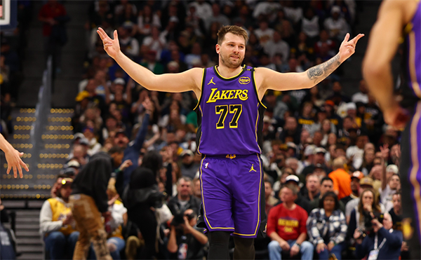 24直播网讯北京时间2月23日,NBA常规赛湖人客场打爆掘金,东契奇全场22投10中、三分9中4、罚球8中8拿到32分10篮板7助攻4抢断1盖帽,正负值高达+20,攻防一体演绎王者归来,多次助攻詹姆斯暴扣,轰进不讲理三分激情怒吼庆祝,带队复仇并且终结掘金的9连胜。