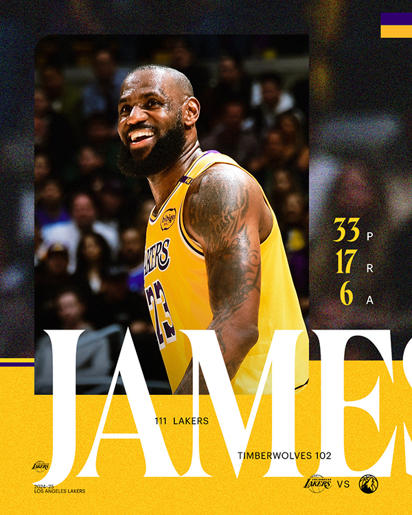 24直播网讯北京时间2月28日,NBA常规赛湖人主场111-102击败森林狼,喜提四连胜的同时重返西部第四,詹姆斯又打出全能一战,全场21投11中、三分9中4拿到33分17篮板6助攻1抢断1盖帽,比赛最后时刻,詹姆斯提前离场并跑回更衣室。