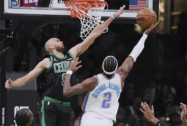 东西部强强对决,雷霆9-0开场打停比赛,之后绿军19-10扳平比分,两队僵持拉锯,第一节雷霆33-30领先3分,亚历山大首节打满12分钟,在进攻端的表现十分出色,单节6投5中独砍11分3篮板,招牌急停后仰美如画,单挑背运过掉杰伦-布朗后杀到禁区拉杆上篮。