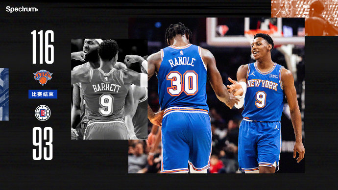 24直播网3月7日讯 5连胜的快船今日坐镇主场迎战7连败的尼克斯,首节之争尼克斯凭借伯克斯的两记三分率先发难抢得主动权,而主场作战的快船反倒一路被动扮演追分角色,尼克斯一直没有受到威胁并一路占据上风,次节快船突然哑火导致崩盘,尼克斯一改首节策略选择冲击内线,而这一次以巴雷特连拿8分为首轰出一波16-0的攻势,这波攻势帮助他们一举确立起19分的领先,面对快船后半节的回暖,巴雷特继续高效进攻并在这一节拿下16分,尼克斯带着19分优势进去下半场。下半场之争尼克斯一度拿到20分以上的领先,不过他们后半节熄火给了快船追分机会,而后者也用一波14-2的攻势将劣势缩小至12分看到希望,然而第四节开局快船又一次哑火上演“自爆”,尼克斯这边雷迪什成为奇兵连拿8分,尼克斯又是一波10-0的攻势将分差扩大至20分以上奠定胜局。最终,尼克斯客场力克快船结束7连败,同时也终结了快船5连胜。