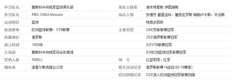 莫斯科中央陆军篮球俱乐部和同名的足球队一样,是一支有前苏联军队背景的俄罗斯运动队,绰号也是“红军”。