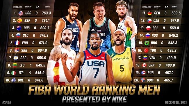 24直播网12月08日讯 ,FIBA官方公布了世界各国男篮的最新世界排名,世界篮坛大环境基本没变,排在前三位的仍是美国、西班牙和澳大利亚!