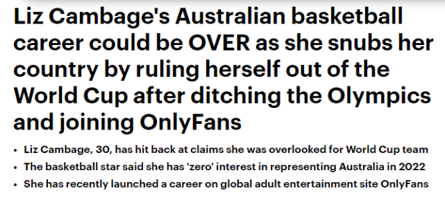 澳洲媒体报道称,放弃奥运的坎贝奇找到了新的兴趣点,她加入了一家成人网站,定期在社媒上发布自己身穿内衣或者比基尼的照片。上个月,这位女球星还说自己曾“害怕”加入成人网站,但被她能因此赚到的巨额金钱所诱惑。