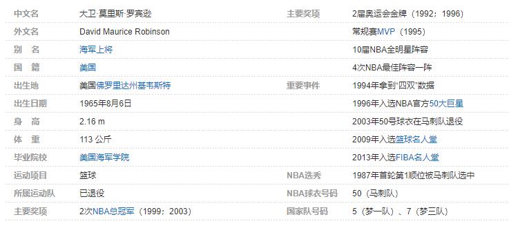 大卫·罗宾逊(David Robinson),1965年8月6日出生于美国佛罗里达州基韦斯特,前美国职业篮球运动员,司职中锋。