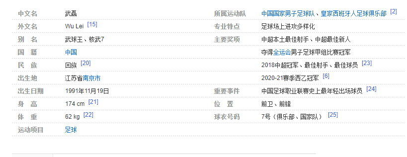 武磊(Wu Lei),1991年11月19日出生于江苏省南京市,祖籍山东济南平阴,中国足球运动员,司职前锋,现效力于西班牙足球甲级联赛的皇家西班牙人足球俱乐部。