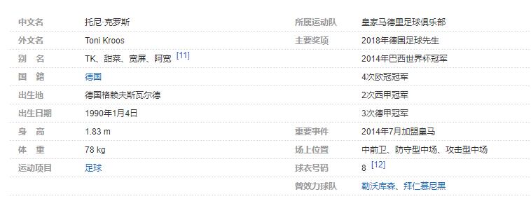 托尼-克罗斯(Toni Kroos),1990年1月4日出生于德国格赖夫斯瓦尔德,德国足球运动员,场上司职中场,现效力于西班牙足球甲级联赛的皇家马德里足球俱乐部。