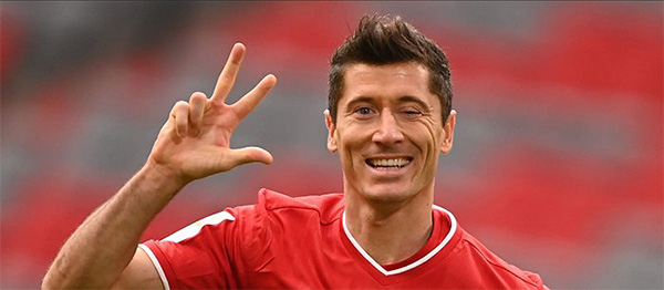 2015年9月26日,莱万多夫斯基梅开二度帮助拜仁3-0大胜美因茨,波兰人在这第168场德甲比赛中完成百球里程碑,成为最快攻入德甲百球的外籍球员。