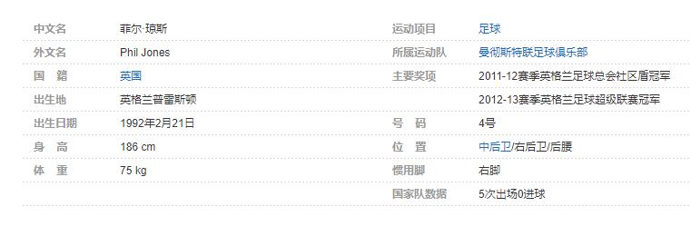 菲尔·琼斯(Phil Jones ),1992年2月21日出生于英格兰普雷斯顿,英格兰足球运动员,场上司职后卫,效力于曼彻斯特联足球俱乐部。
