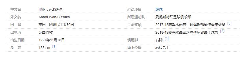 亚伦·万-比萨卡(Aaron Wan-Bissaka),1997年11月26日出生于英国伦敦,拥有英国/刚果民主共和国双重国籍,英国职业足球运动员,司职右边后卫,效力于英超曼彻斯特联足球俱乐部。
