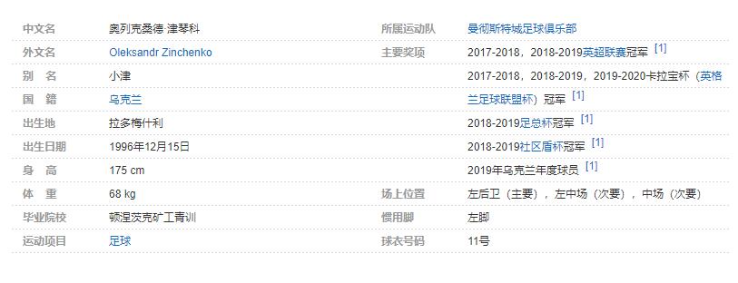 奥列克桑德·津琴科(Oleksandr Zinchenko),1996年12月15日出生于乌克兰拉多梅什利,乌克兰足球运动员,场上司职左后卫,效力于英超的曼彻斯特城足球俱乐部。
