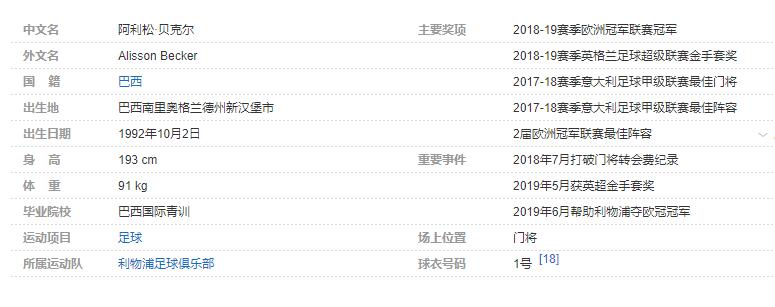 阿利松·贝克尔(Alisson Becker),全名阿利松·拉姆塞斯·贝克尔(Alisson Ramses Becker),1992年10月2日出生于巴西南里奥格兰德州新汉堡市,巴西足球运动员,场上司职门将,效力于英格兰的利物浦足球俱乐部。