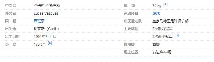 卢卡斯·巴斯克斯(Lucas Vázquez),1991年7月1日出生于西班牙柯蒂斯,西班牙足球运动员,司职右边锋,可兼任中场,效力于西甲皇家马德里足球俱乐部。