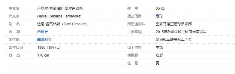 丹尼尔·塞瓦略斯·费尔南德斯(Daniel Ceballos Fernández),简称“达尼·塞瓦略斯”(Dani Ceballos),1996年8月7日出生于西班牙塞维利亚,西班牙足球运动员,司职中场,效力于西甲联赛的皇家马德里足球俱乐部。