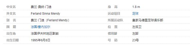 费兰德·门迪出生于1995年6月8日,是一名法国足球运动员。场上司职左后卫,目前效力于皇家马德里足球俱乐部。