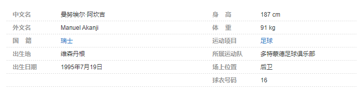 曼努埃尔-阿坎吉(Manuel Akanji),瑞士足球运动员,现效力于多特蒙德足球俱乐部。
