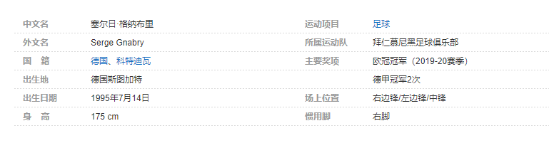 塞尔日·格纳布里(Serge Gnabry),全名塞尔日·戴维·格纳布里(Serge David Gnabry),1995年7月14日出生于德国斯图加特,德国男子职业足球运动员,司职右边锋,亦可胜任左边锋和中锋,效力于德甲拜仁慕尼黑足球俱乐部。