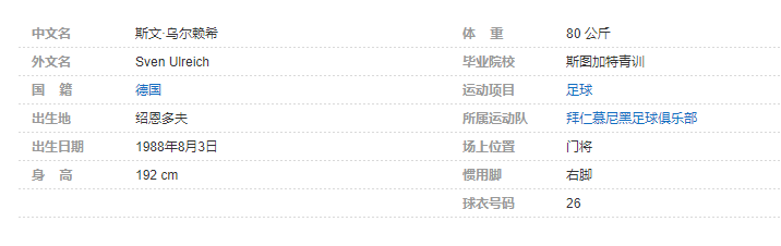 斯文·乌尔赖希(Sven Ulreich),1988年8月3日出生于德国绍恩多夫,德国男子职业足球运动员,场上司职门将,现效力于德国足球甲级联赛的拜仁慕尼黑足球俱乐部。