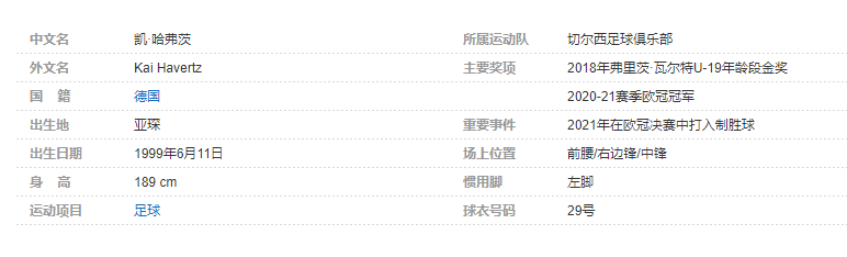 凯·哈弗茨(Kai Havertz),1999年6月11日出生于德国亚琛,德国男子职业足球运动员,司职前腰,亦可胜任右边锋和中锋,现效力于英超的切尔西足球俱乐部。