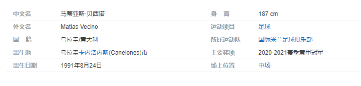 马蒂亚斯-贝西诺(Matias Vecino),1991年8月24日出生于乌拉圭卡内洛内斯(Canelones),乌拉圭职业足球运动员,司职中场,现效力于国际米兰足球俱乐部。