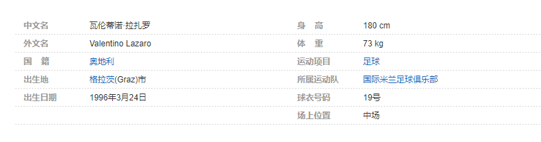 瓦伦蒂诺·拉扎罗(Valentino Lazaro),1996年3月24日出生于奥地利格拉茨(Graz)市,奥地利足球运动员,场上司职中场,现效力于国际米兰足球俱乐部。
