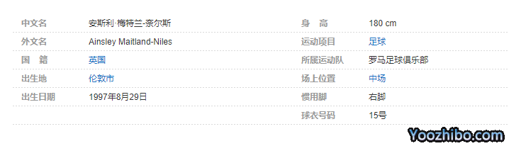 安斯利·梅特兰-奈尔斯(Ainsley Maitland-Niles),1997年8月29日出生于英国伦敦市,英格兰足球运动员,司职中场,效力于罗马足球俱乐部。
