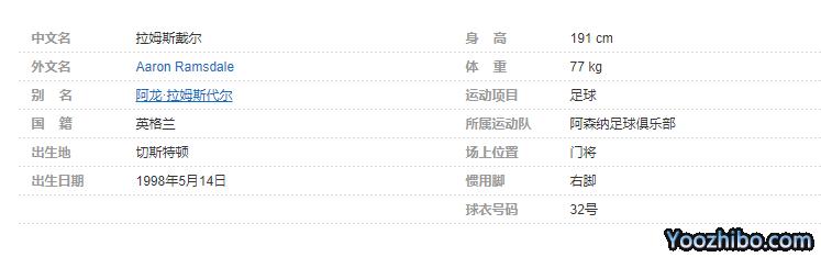 阿龙·拉姆斯戴尔(Aaron Ramsdale),1998年5月14日出生于英格兰切斯特顿,英格兰足球运动员,场上司职门将,现效力于英格兰足球俱乐部阿森纳。