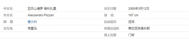 亚历山德罗·普利扎里(Alessandro Plizzari),2000年3月12日出生于意大利克雷马,意大利足球运动员,场上司职门将,效力于意大利足球乙级联赛的莱切足球俱乐部。